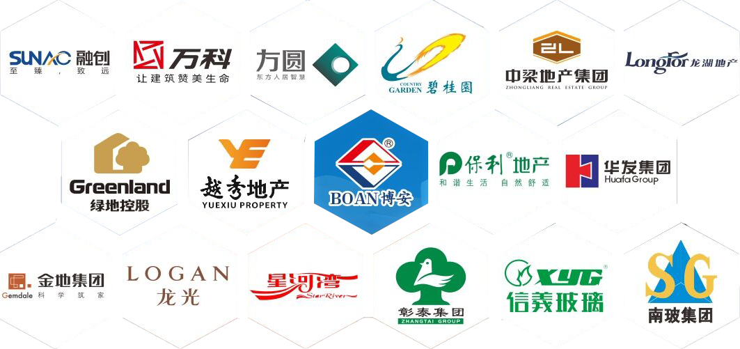 Boan Company mainly produces and sells: single layer fire resistant glass, high borosilicate fire resistant glass, composite heat-insulated fire resistant glass, nano crystal  silicon fire resistant glass, steel frame fire resistant glazed windows, aluminum alloy fire resistant glazed windows, heat-insulated oversized glazed fire resistant doors, smoke barrier, fireproof glazed non-load-bearing partition walls, large fireproof glazed curtain walls, aluminum alloy non-insulated fireproof glazed doors, and fireproof glazed door and window systems