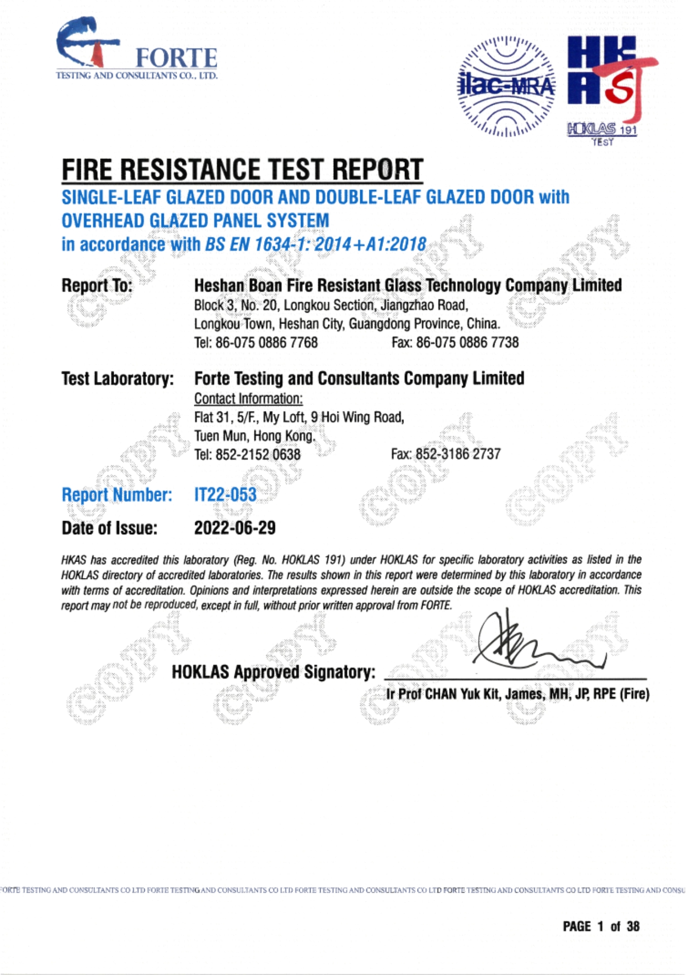 120mins-SIngle-Leaf Glazed Door And Double-Leaf Glazed Door With Overhead Glazed Panel System